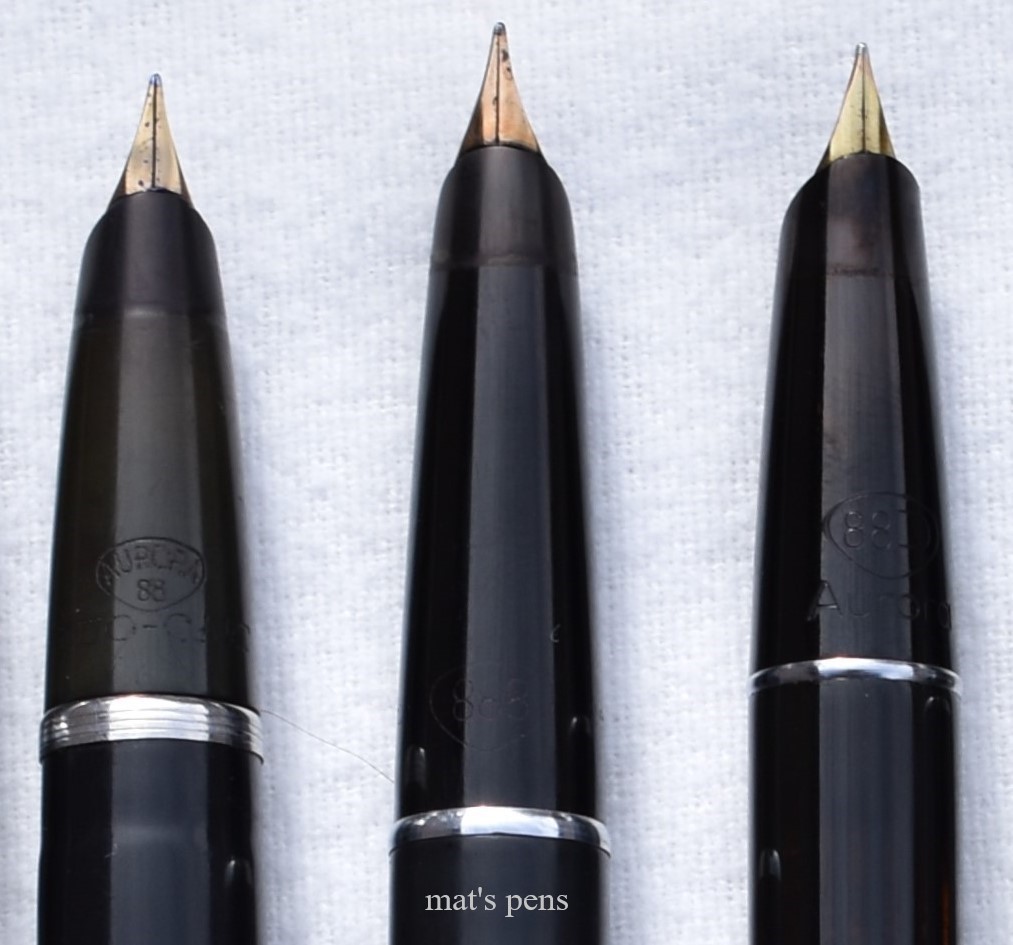 Nib units screw-out and are interchangeable with like Aurora pens.