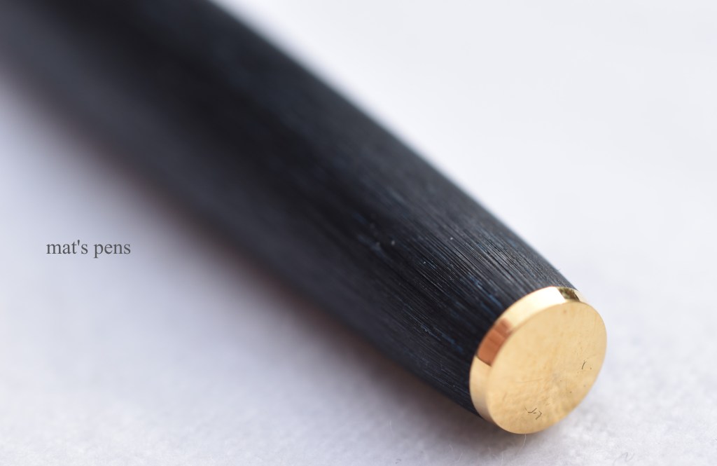 I like the matte resin body; it has a subtle, grippy texture and is comfortable to use for long writing sessions. The matte finish on the trim is not durable at all, however. The finish on the ring on the end of the grip section has flaked-off entirely, and in other places it’s simply scratched off under normal use. The metal underneath has a shiny ruthenium or polished hematite appearance, though, so it’s not terrible–on the contrary, I love the way this pen is aging. I do know that some people would really hate that though, so it’s important to point-out, and it sort of cheapens the feel of the pen a bit. Nit picky? Maybe.
