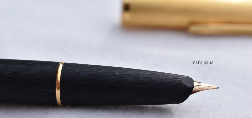 The nib is functional and practical, but uninspiring–stiff, small sweet spot, and too fat to really be a fine. It’s not a bad nib per se, it’s just not my favorite.