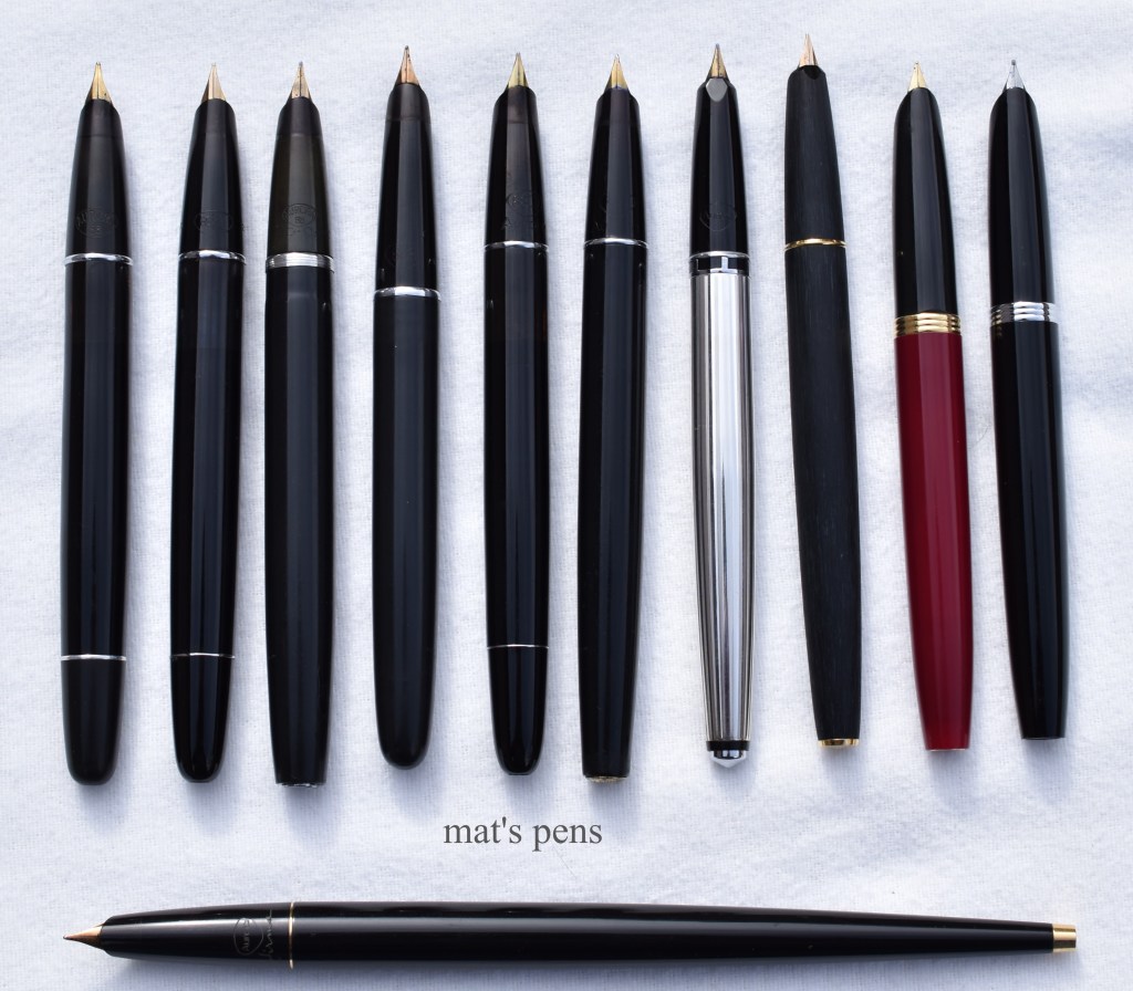 If buying from Japan, one has access to Pilot’s entire nib lineup except the music nib, as far as I can tell. Soft fine, fine medium, soft fine medium, soft medium, double broad, coarse (sort of like a 3B nib), posting, waverly, stub and falcon.