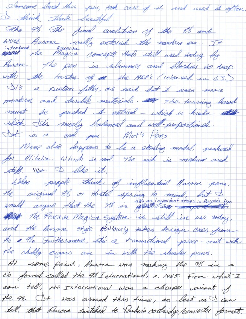 Writes really well. Aurora’s pens typically do, in my experience, but tuning by a nibmeister like John Mottishaw always helps.