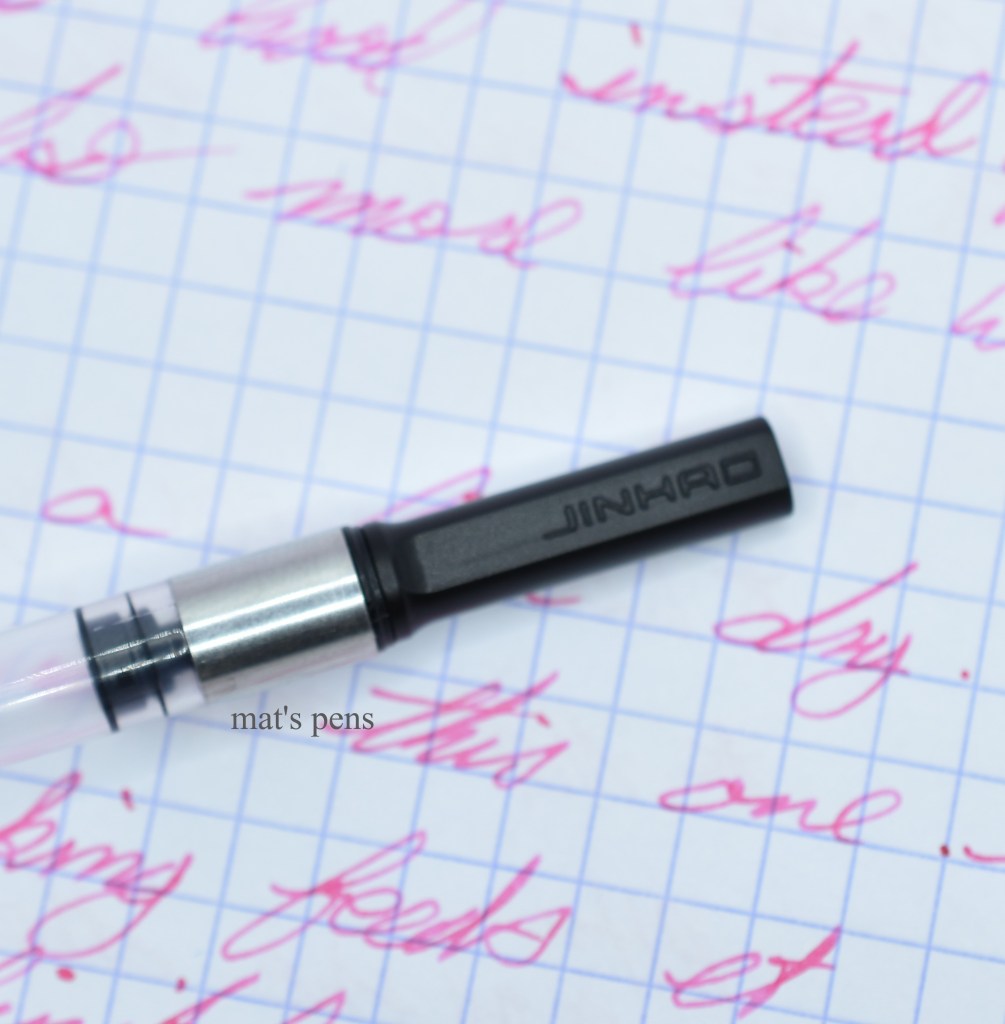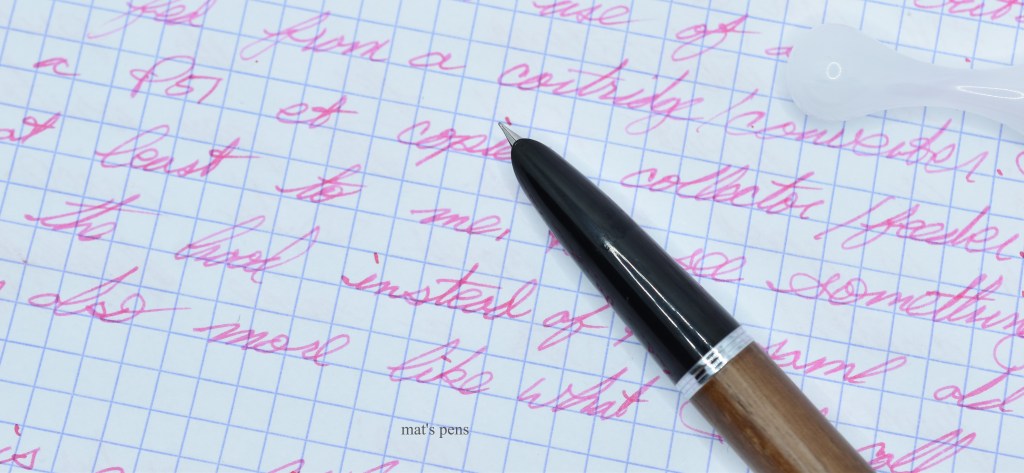 - This is more of a personal note than a true con: while I think the idea of this pen’s filling system is great, in practice unscrewing the piston rod, engaging the plunger, and otherwise actually using the pen is incredibly fiddly compared to a piston or vacuum filler or even an eyedropper pen with an ink shutoff valve, like an Opus 88. This is compounded slightly by my pen not being a demonstrator, so it’s impossible to see what’s going on in the pen. Again, not really a true con, and once the pen has ink in it it’s basically irrelevant.