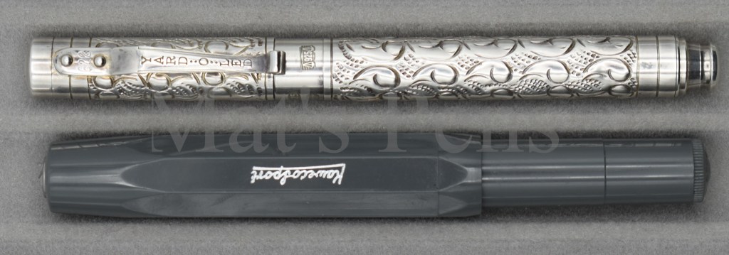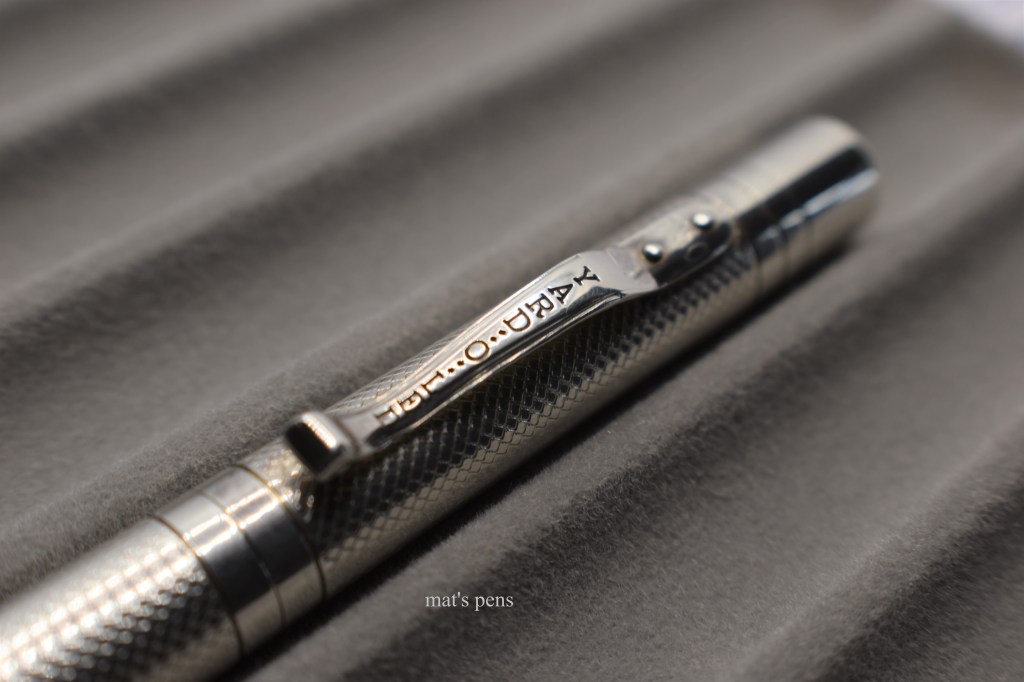 First, the good: this petite pen is beautiful. Each pen is individually made either on very old machining tools or chased by hand by silversmiths. Because of this, one can see the different styles used by the individual silversmiths–for instance, it’s very obvious that my older Viceroy Grand was made by a different person than the Pocket, even though they are the same pattern.